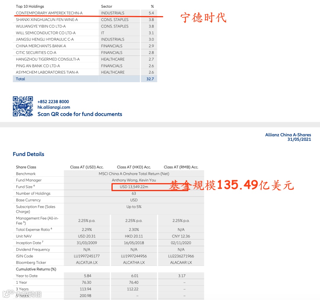 作为全球的动力电池龙头宁德时代备受外资巨头关注。例如,记者查询相关材料发现,截至5月底,德国资管巨头安联投资旗下安联神州A股基金的第一大重仓股即为宁德时代。截至5月底,它持有的宁德时代市值占基金资产的5.4%。