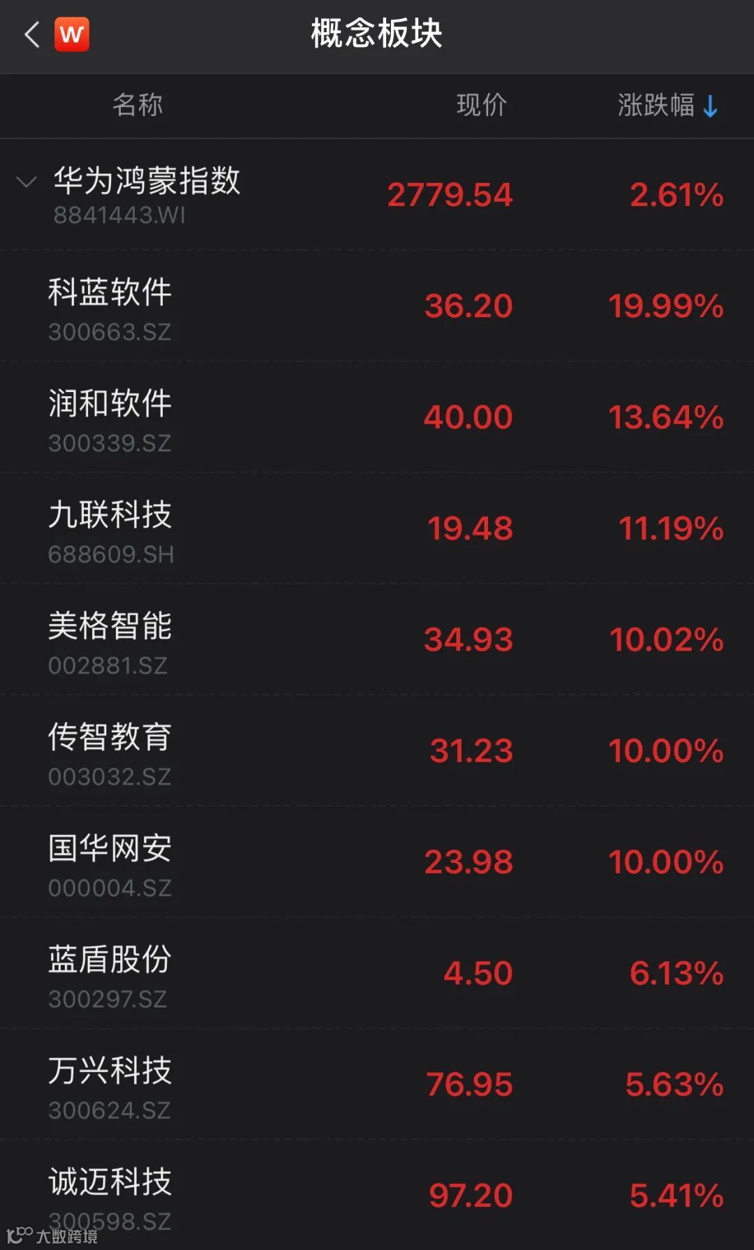 ➤鸿蒙概念股又又大面积涨停!一个月涨3倍,机构、游资、北向资金全参与