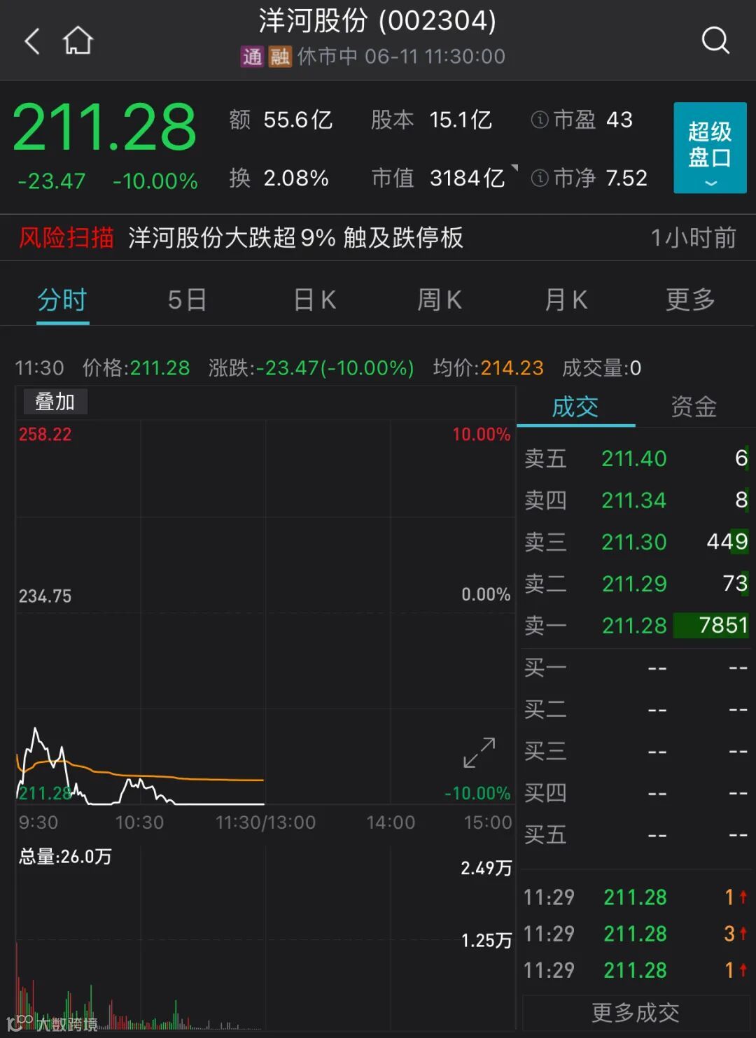 然而,前期备受关注的酒类股却表现疲软。截至午间收盘,洋河股份跌停。泸州老窖跌3.65%,五粮液跌0.69%,贵州茅台跌1.26%。