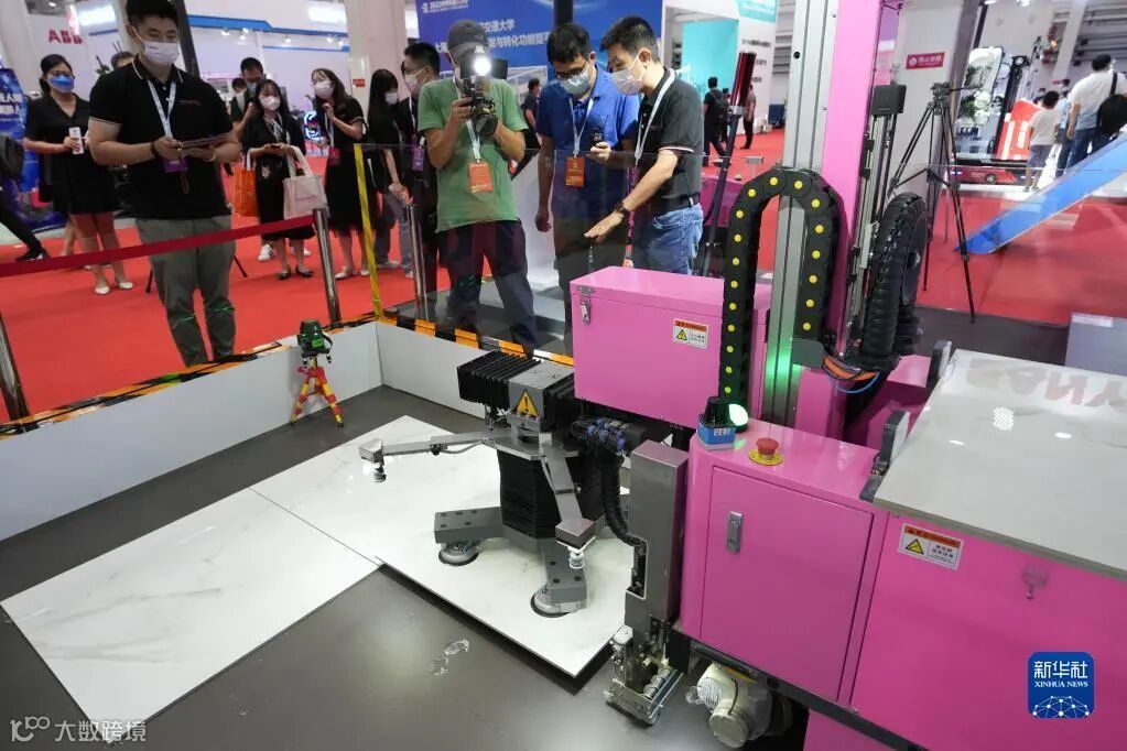 这是在2022世界机器人博览会“机器人+建筑”区域展示的一款地砖铺贴机器人(8月19日摄)。新华社记者 鞠焕宗 摄