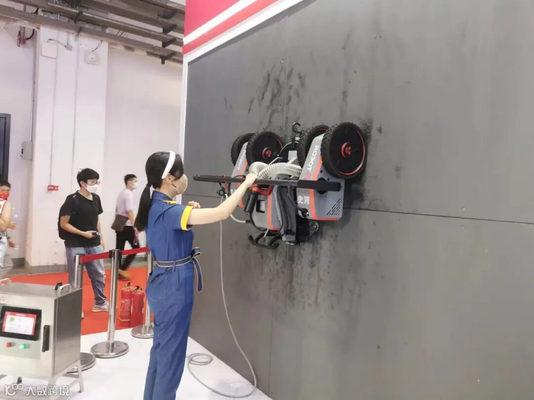 在史河科技展台,只见一个船舶除锈机器人正吸附在一面测试船板上“一丝不苟”地除锈。“这是我们自主研发的Highmate V40水射流除锈机器人,基于柔性化永磁吸附底盘技术,具有高负载自重比和强曲面适应能力等特点,可替代人力从事高空作业,避免高危风险,同时还可实现除锈废水100%回收,极大提升除锈效率与质量。我们的目标就是‘让世上没有危险的工作’。”史河科技副总经理路保安介绍。