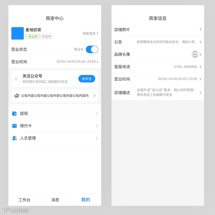 ·基本信息管理(营业状态、时间、店铺描述等),商家可随时随地调整