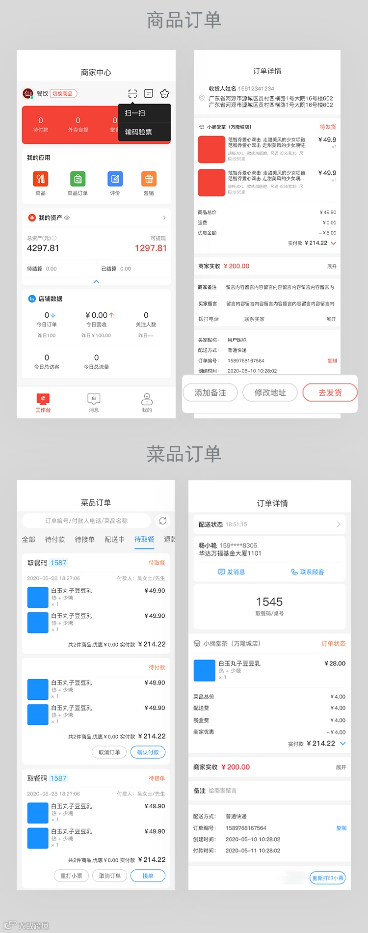 ·普通商品订单(改价、修改地址、发货、退款)