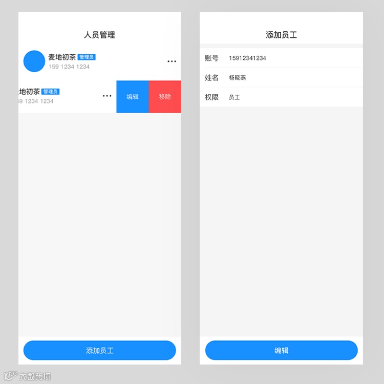 ·商家可添加多名员工,合理分配角色