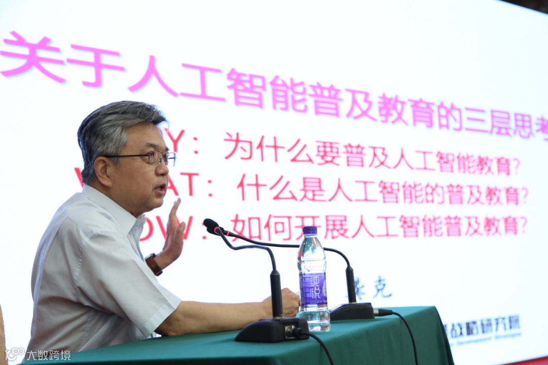 人工智能教育可以从三个角度来看,首先是为智能化生存的教育,教育第一个问题是学会生存,其次是为智能化发展的教育,要培养一批专家发展核心技术,最后是为智能化向善的教育,所有人共同保证技术向善,即人类创造的工具要对人类及共生存环境有利。我理解我们的普及教育,就是面向所有人的教育,适应智能化生存是所有人的问题,另外要保证智能化向善也是所有人的问题,我想这是人工智能普及教育的重点,以培养有高尚品德的、掌握智能化生存发展基本能力的一代新人。