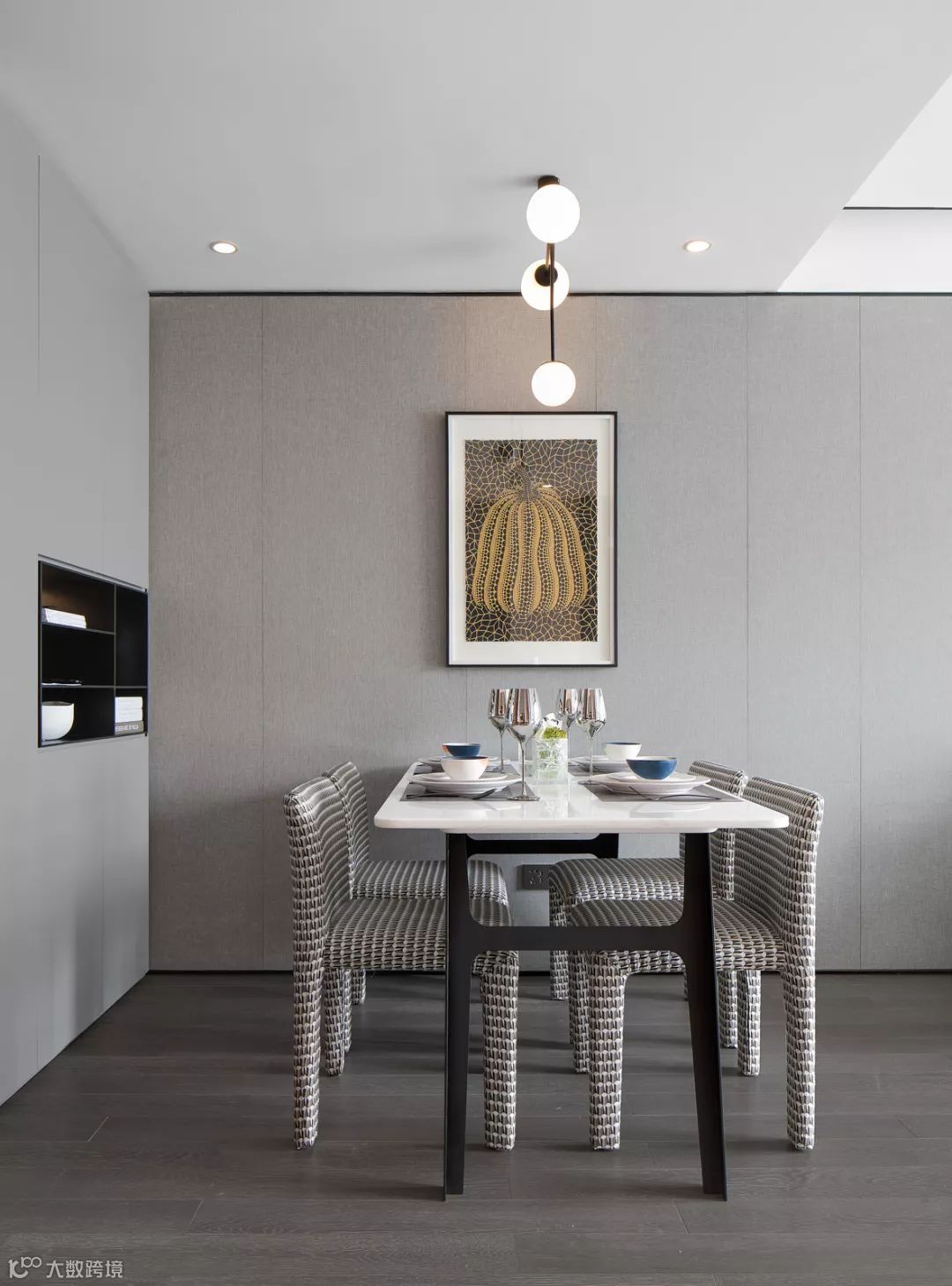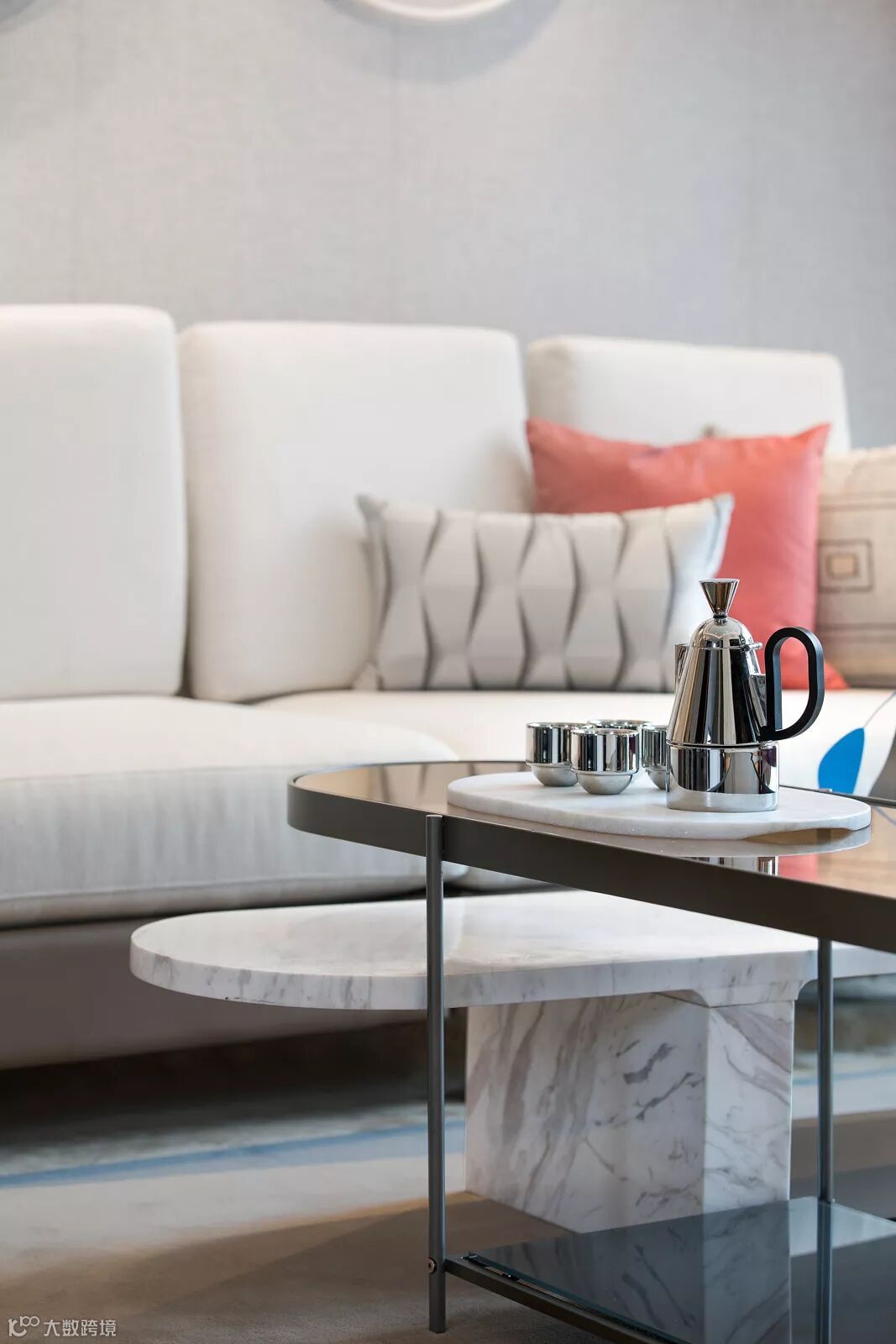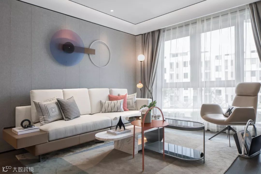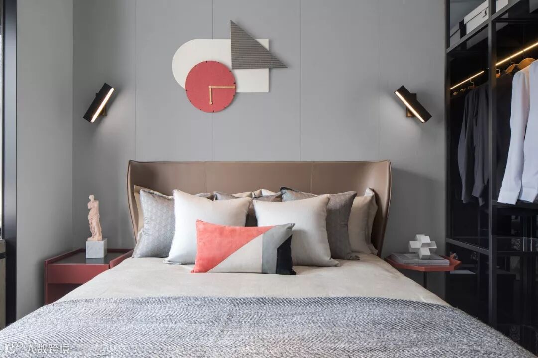 在深浅不一的灰调空间里,设计师巧妙的以珊瑚橙做为点缀,恰好有种深海的隐喻,色彩撞击碰撞出新鲜活力,浪漫时髦的都市情调惹人心动。