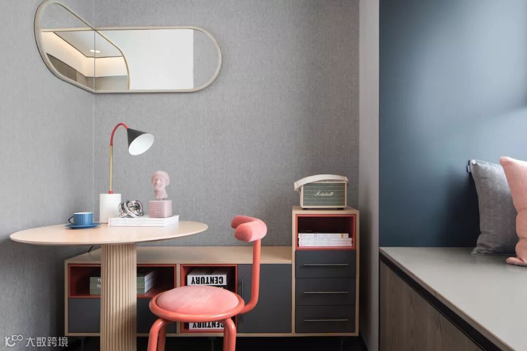 珊瑚色用于儿童房也是非常适合的,设计师通过不同比列的运用,让每个空间都有它的气质。