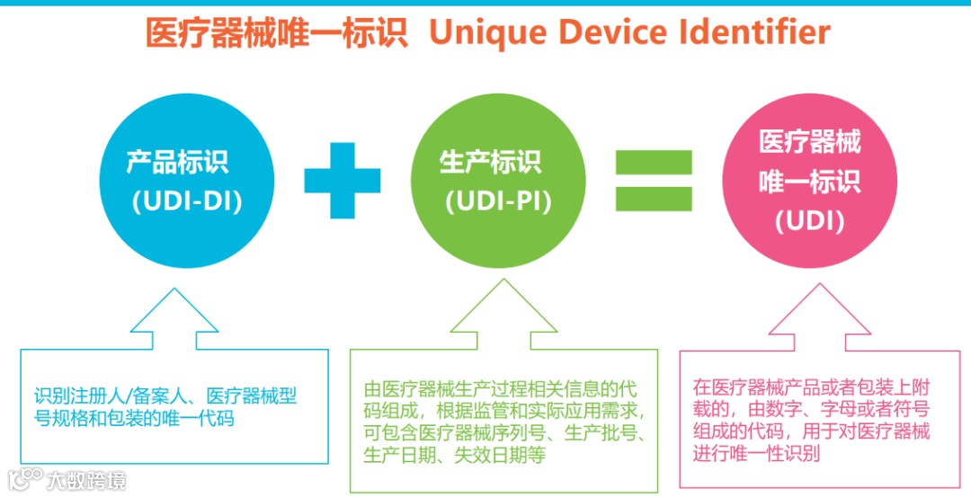 UDI医疗器械唯一标识,是一种在医疗器械产品或者包装上附载的,由数字、字母或者符号组成的代码,用以对医疗器械进行唯一性识别。