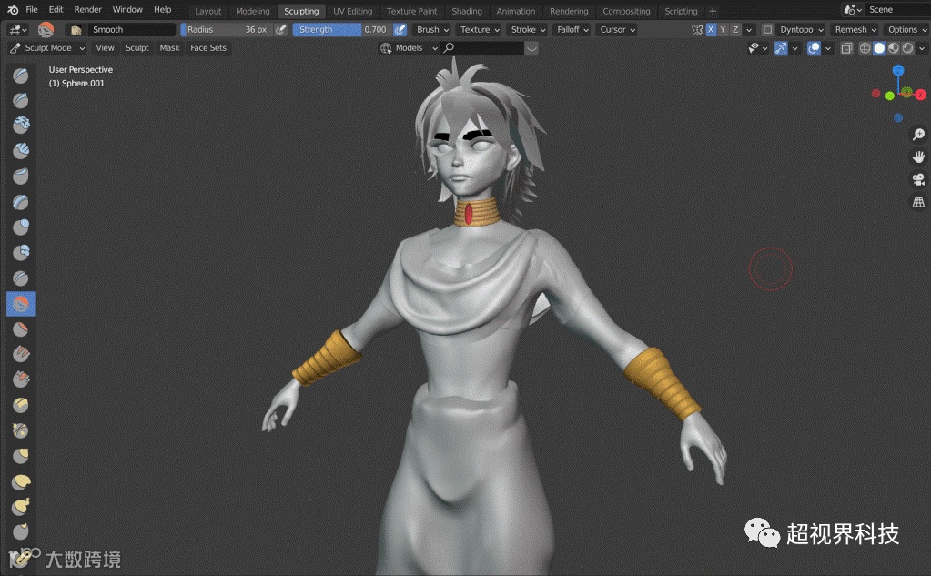 Blender在其他方面几乎都有所帮助。使用简单的形状,我可以把它们雕刻成珠宝、裤子,甚至一个看起来像辫子的东西。而且Blender Hair tool插件可能是创建任何特定发型的最佳和最令人愉快的方式。对于动漫(头发)造型,你所要做的就是将末端稍微削尖,让它们看起来更尖。