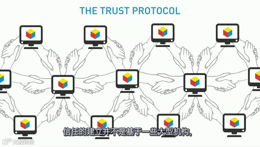 不过其中最根本的要素,是叫做区位区块链的技术。这是人类历史上首次,各地的人们可以彼此信任,并进行点对点的交易。信任的建立并不是基于一些大型机构,而是基于合作,基于密码技术和一些精巧的代码。因为信任正是起源于这一技术,我把它叫做“信任协议”。