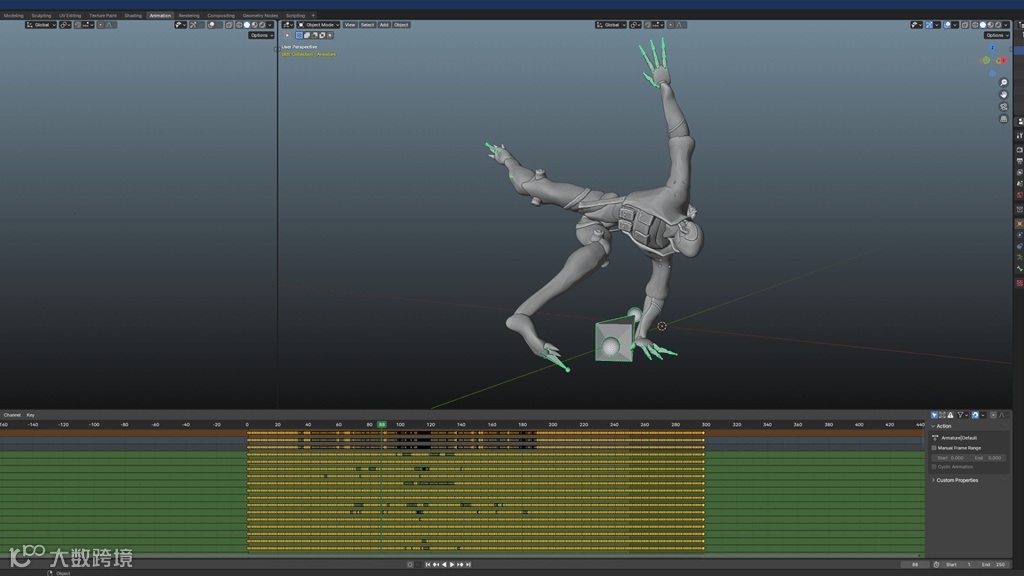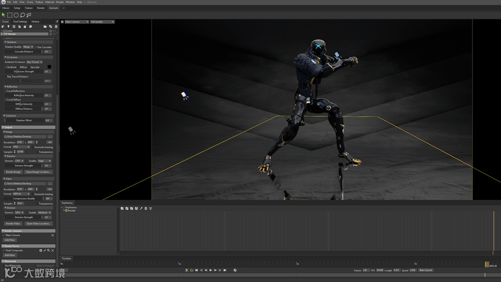 调整渲染、摄影机、灯光和天空,以便尽可能获得完美的动画捕捉。动画选项卡和时间线对于与您试图创建的循环相匹配非常重要。因此,在这里,我们只是确保捕获了完整的序列,并且在渲染过程中没有部分重复。通过首先选择其层次结构中的根来直接在模型上调整动画速度,可以大大帮助微调渲染过程中动画播放的速度。