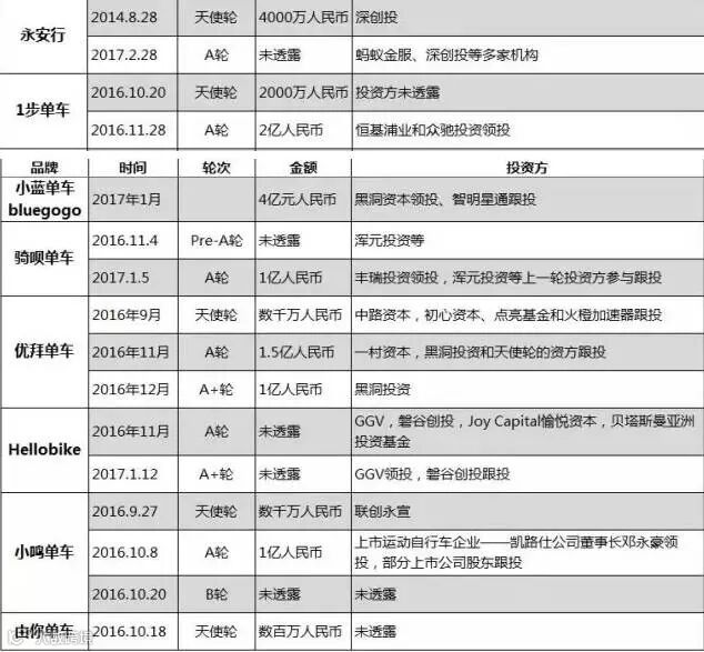 摩拜截止到目前累计融资额11亿美金,估值约为20亿美金。