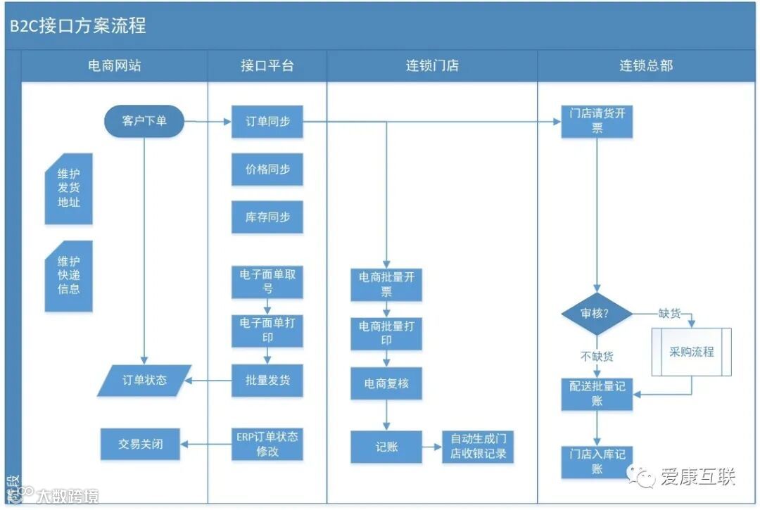 企业在第三方电商平台开店,需要对电商平台上商品价格、库存进行更新,并将电商订单下载到ERP系统,ERP进行作业后,将物流信息上传到电商平台实现发货。