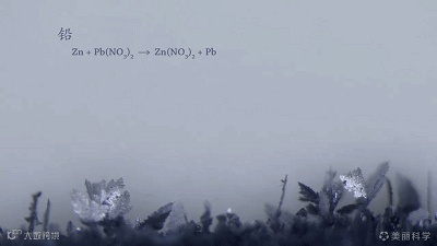 铅的置换过程,一片片金属叶子蔓延生长。