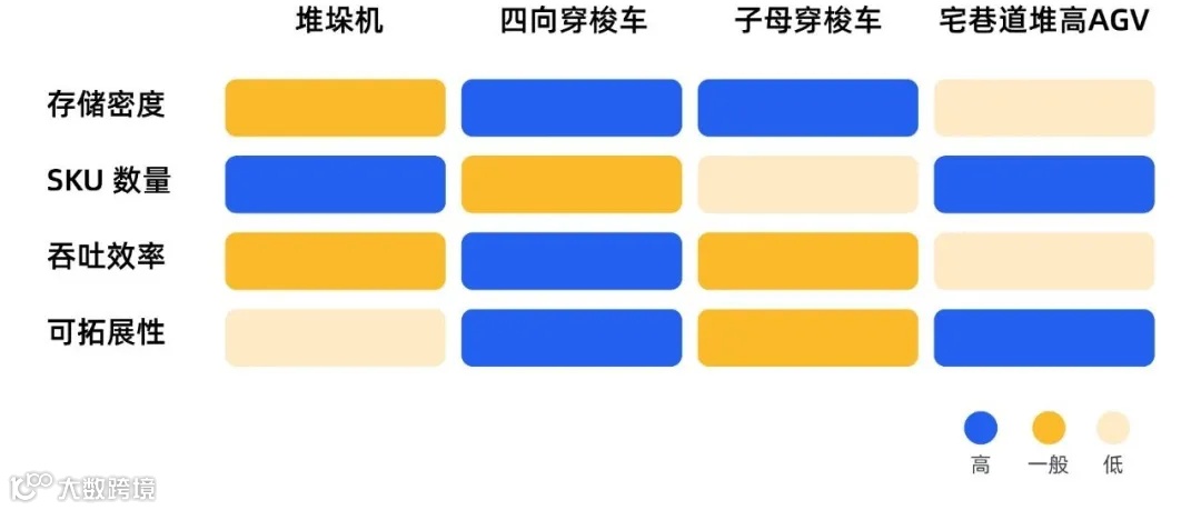 四向穿梭车支持先进先出等多种智能存储策略,但子母车一般无法实现。且当仓库某一层货物集中出入库时,子母穿梭车无法全部抵达该层作业以提高出入库效率,但四向穿梭车可以支持。