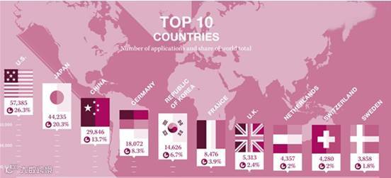 世界知识产权组织近日公布的2016年全球专利合作协定(PCT)国际专利申请的统计报告显示,来自中国的PCT国际专利申请量为4.31万件,较前一年激增45%,仅次于美国的5.6万件和日本的4.52万件。