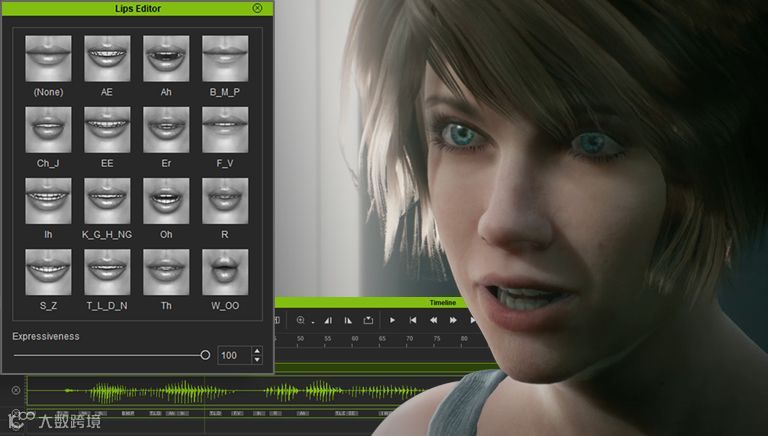 音频口形同步将人的语音文件转换为有声动画。可使用时间轴编辑对嘴唇、下巴、舌头的闭合力度进行微调细化。