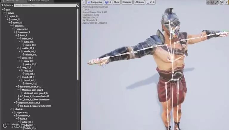 支持Epic IK骨骼标准并带有用于手持武器动画的附加“手骨”,以及用于运动控制的“根IK”骨骼。