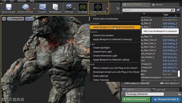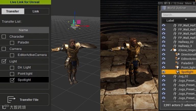 无需FBX文件导入/导出即可直接向Unreal Engine传输iClone角色、灯光和摄影机。