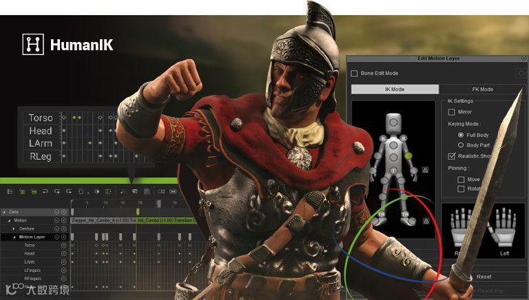 使用Human IK(Autodesk MotionBuilder技术)进行动作姿态调整。