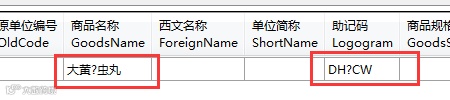 A:直接去数据库修改,加N:update goodsdoc set goodsname=N'大黄䗪虫丸' where goodsid=’’。