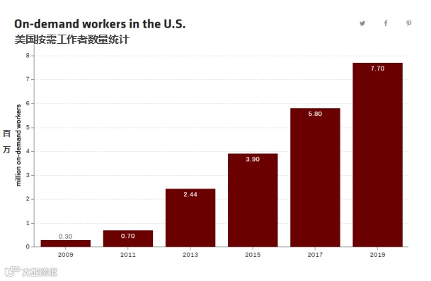 目前在美国有大约400万按需工作者,这一数据预计在未来四年内将会翻倍。