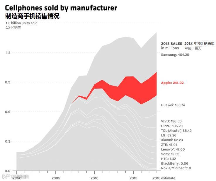 最近一段时间,iPhone迎来了低价竞争,销售额下滑。根据研究公司Canaccord Genuity的数据,在2018年,苹果公司预计售出2.41亿手机,而三星则预计售出4.04亿手机。但因为iPhone的售价比大多数手机高,所以即使iPhone的销售量不是最高的,它的收益却是排第一的。