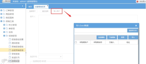 1、短信平台营销短信支持导入发送手机号码excel功能