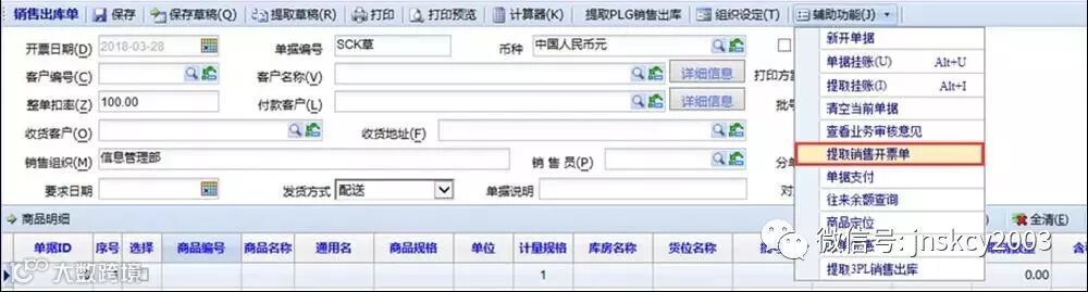 第3步 到【销售出库单】提取“销售开票单”、并保存