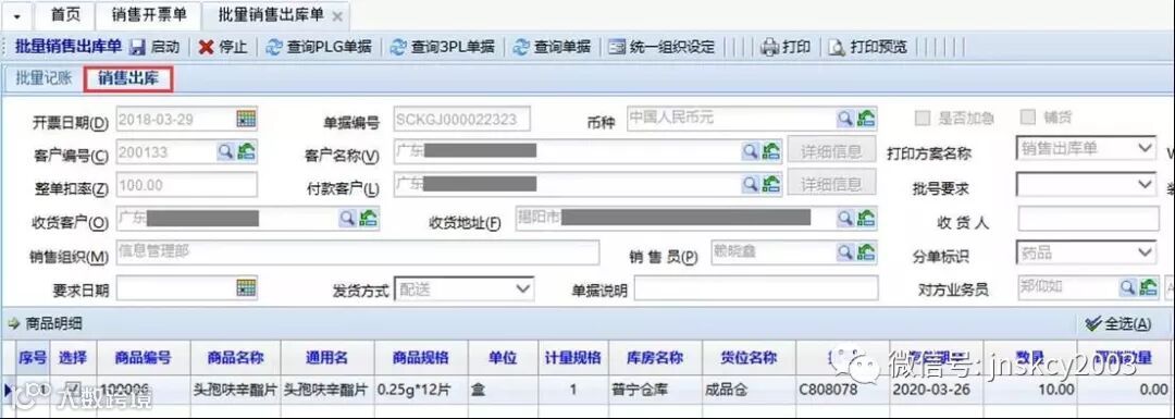 【销售开票单→批量销售出库单】