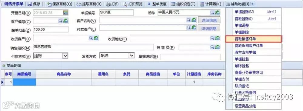 第2步: 到【销售开票单】提取“销售订单”、并保存