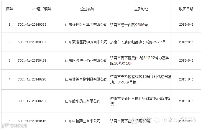 药品批发企业GSP认证证书收回目录
