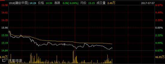 周五,融创中国在港股价跌幅加大,最高下跌至14.96港元,跌幅6.67%。自7月4日以来受乐视系关消息影响,四个交易日内,融创中国股价下跌超过了11%。市场猜测,融创中国董事局主席孙宏斌很有可能接任乐视网董事长。