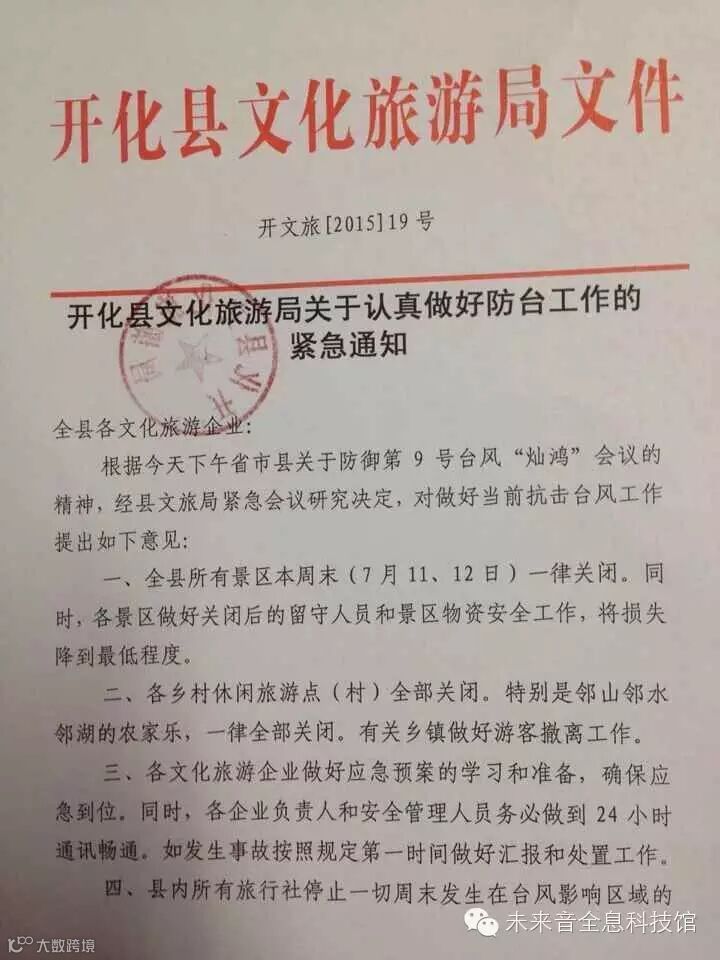 未来音全息科技馆应县旅游局紧急通知,将于7月11日、12日闭馆两天,闭馆期间暂停对外开放,7月13日正常营业。