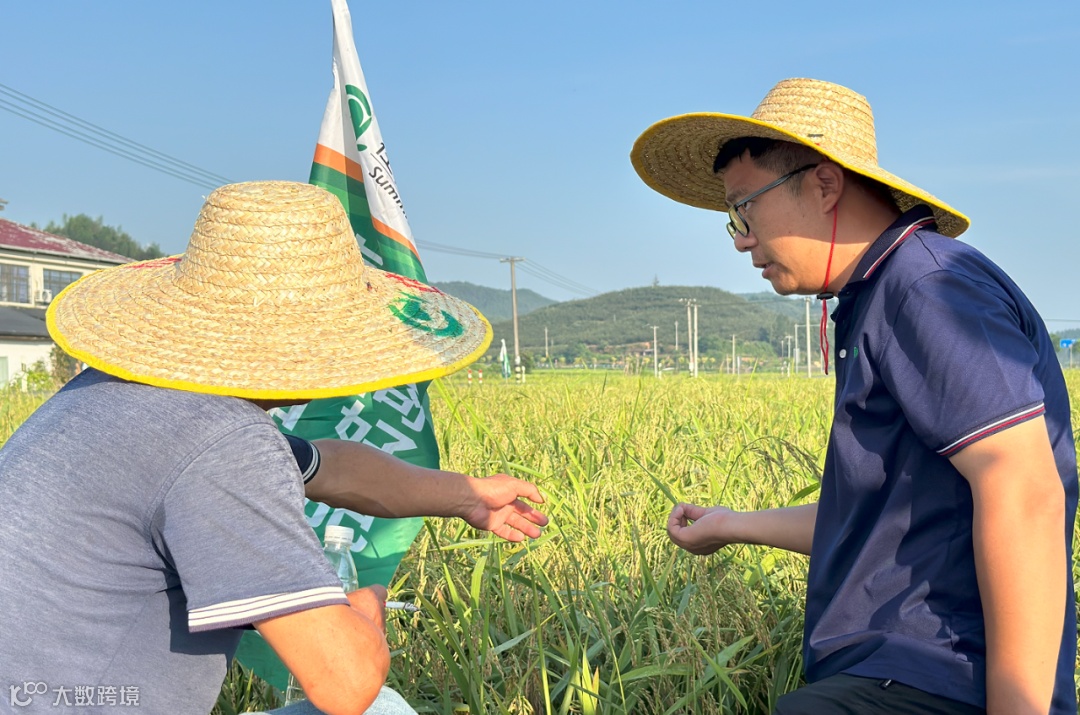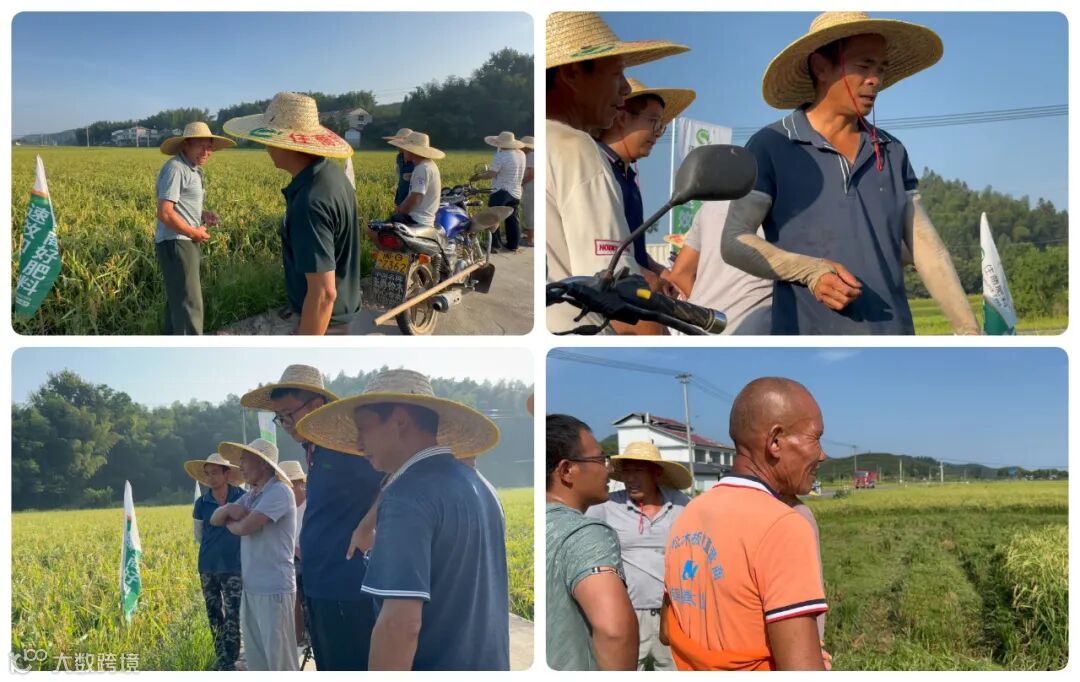 在观摩现场,在公司技术人员的带领下沿着田埂深入察看水稻长势,他们时而俯身观察稻穗的饱满程度,时而交流探讨心得。只见示范田里的水稻苗齐根长、稻穗金黄、籽粒饱满,相较常规施肥田块出穗更好、成熟度更高,邱老板和观摩人员纷纷感叹在今年特殊天气影响下,水稻还能出落的这么整齐饱满,对“脲醛缓释”住商肥料使用效果给予了充分肯定。
