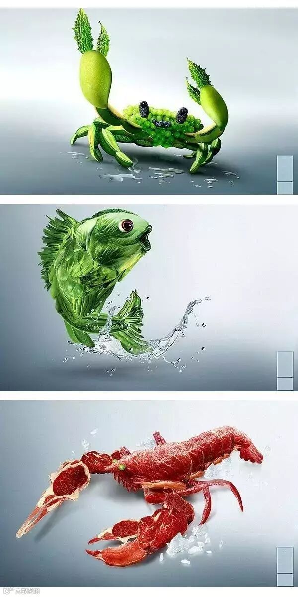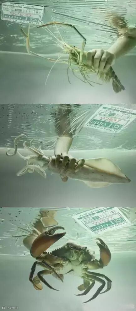 某保鲜膜广告:食物放在里面依旧新鲜。对于海鲜来说,感觉身在水中。