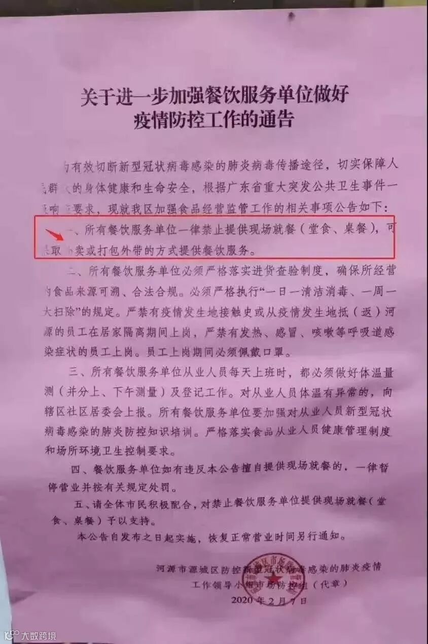 即日起,禁止堂食、桌餐!
