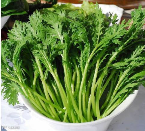 山茼蒿含丰富维持生活素A,可维护肝脏,有助体内毒素排出。将山茼蒿和柳丁、蕃茄、胡萝卜、柚子、苹果、综合坚果等水果蔬菜一起打成精力汤饮用是不错的选择。