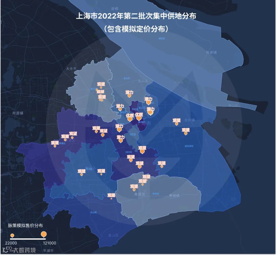 本次出让地块共涉及浦东、静安、长宁、普陀、杨浦、宝山、闵行、嘉定、金山、松江、青浦、奉贤12个地区。投资清单通过机器学习算法,整合人口、竞品、产业、POI、板块价值等数据综合计算,利用【城市空间价值模型法】对每一块土地进行智能模拟定价,并给予拿地推荐标签。