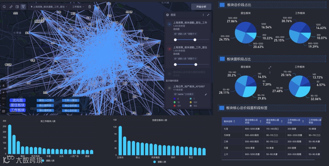 因此,我们会解析每一位用户职住平均的通勤距离,其中包括直线距离和驾车距离,以及理想通勤直线距离。