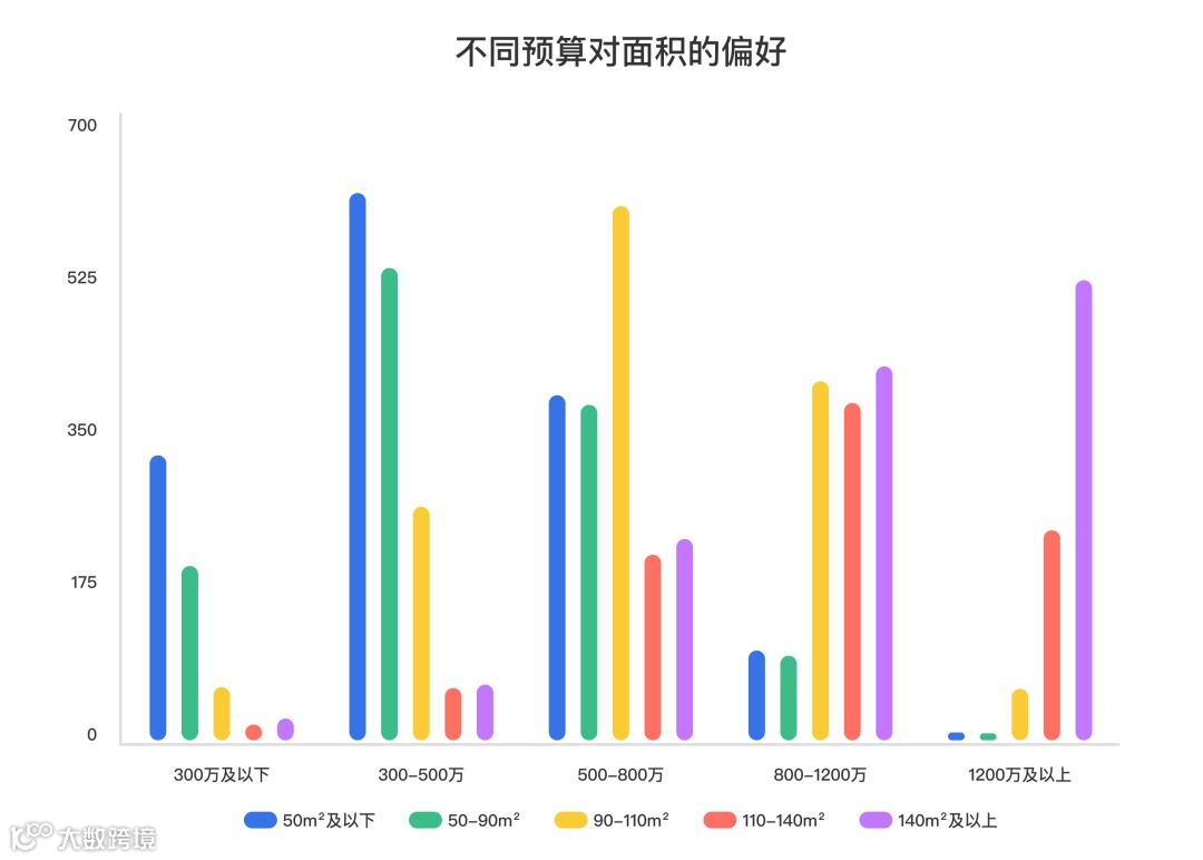 预算面积其实很好理解,我们称之为不同预算下购房者对于面积的偏好,