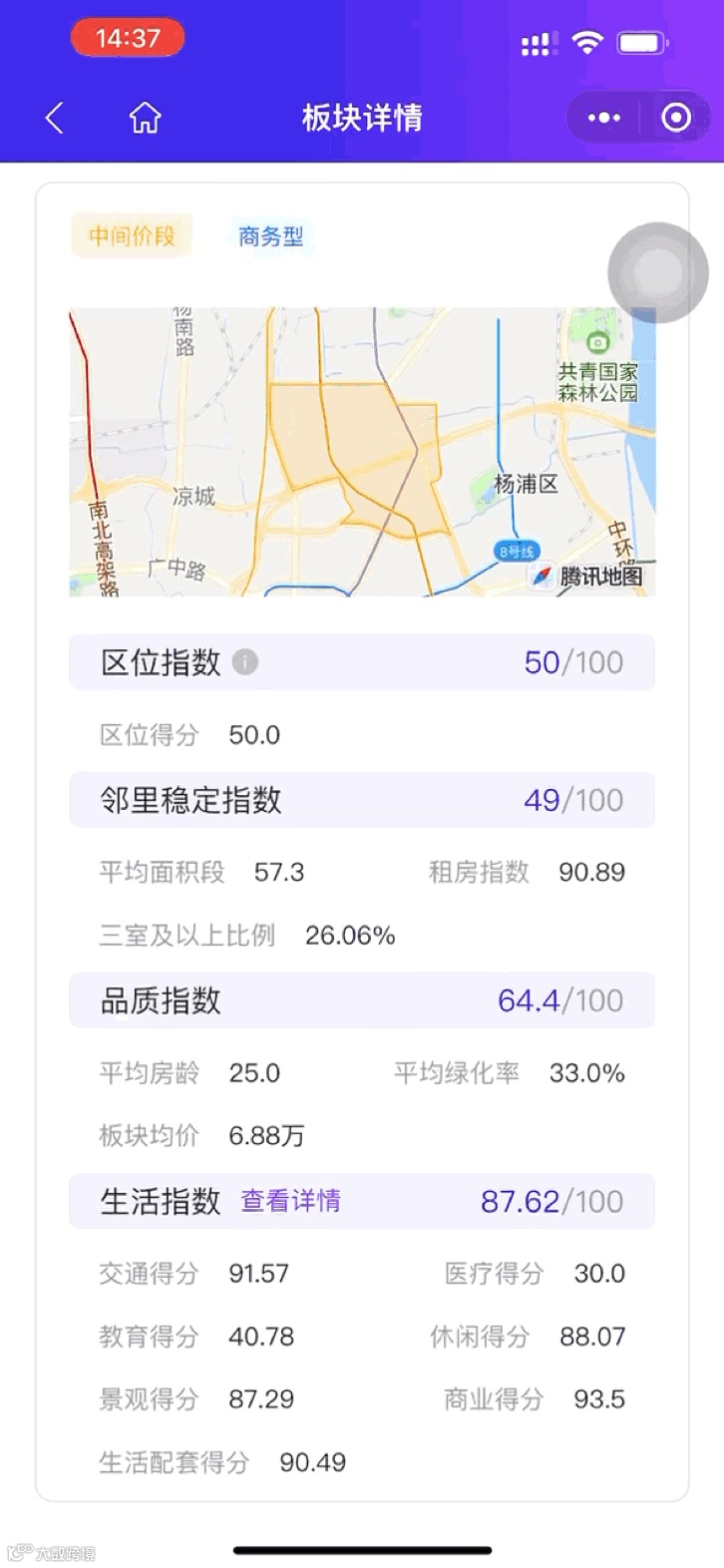 上图中可以看到,适合这位用户的板块(五角场)已经在地图上进行了标亮。