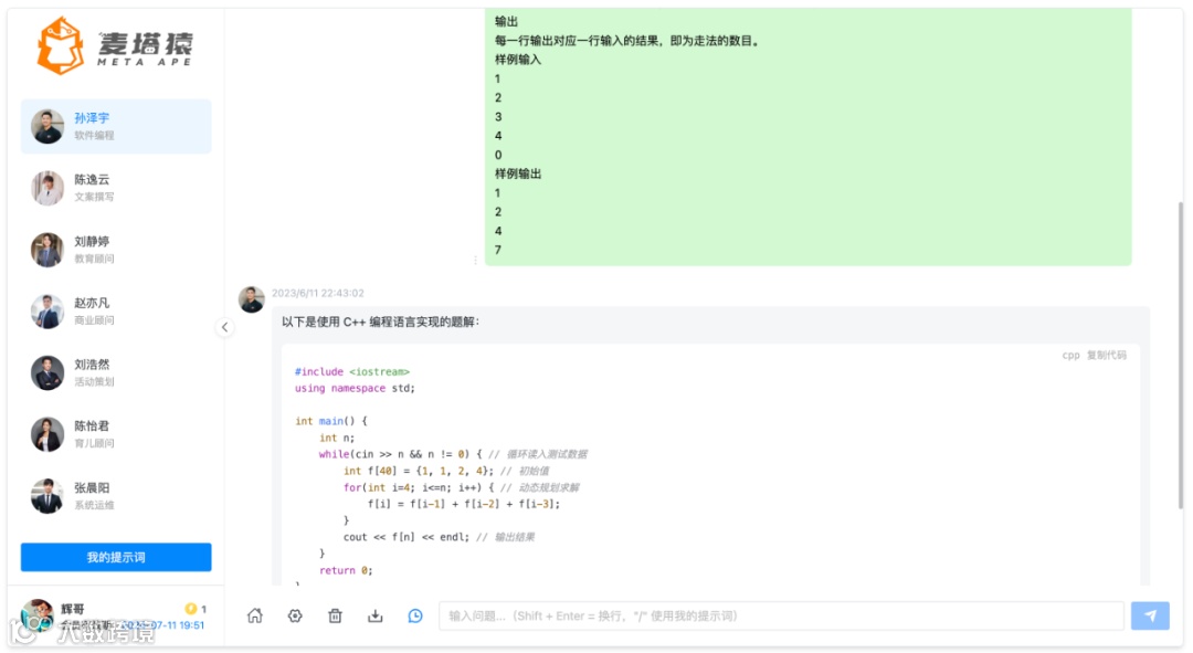 ,例如软件编程相关问题、撰写主题文案、教育问题、撰写课件、数据分析、学生课后辅导等等。无论你是想要解决工作上的难题还是提高自己的学习能力,麦塔猿都可以为你提供所需的帮助。