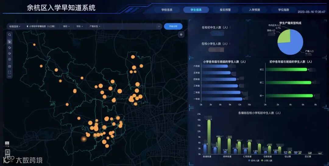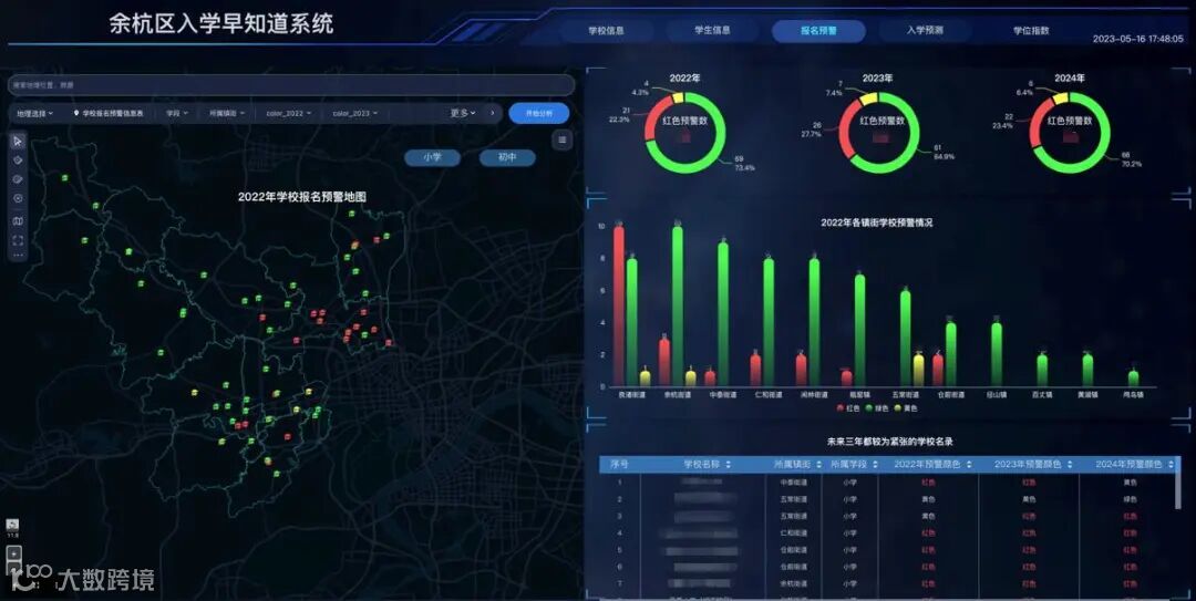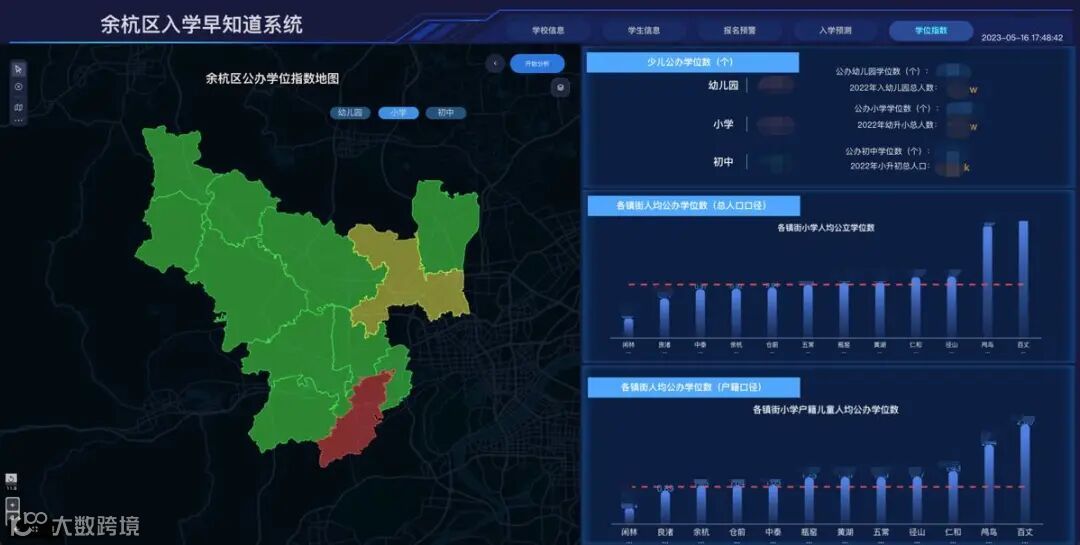 以杭州市余杭区为例,2010-2020年间,余杭区的快速发展吸引大量人口涌入,教育资源紧张,激发了市民的入园入学的焦虑,对教育治理和社会稳定提出挑战。在此背景下,余杭区教育局联合脉策科技创新建设了针对教育供需问题的民生应用——“入学早知道”。