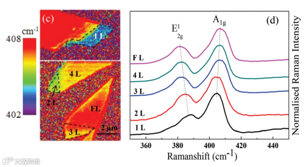 在实际科学研究和应用中,首先要做的就是准确辨别二维材料层数,随着二维材料层数的增加,光谱的峰位、强度、线宽或者线型可能会发生显著改变,或者出现一些新的光学特征。利用这些光谱特征信息随层数的变化规律,可以对二维材料的厚度甚至堆垛方式等进行鉴别,因此快速且准确地判定层数对材料研究和器件制备至关重要。