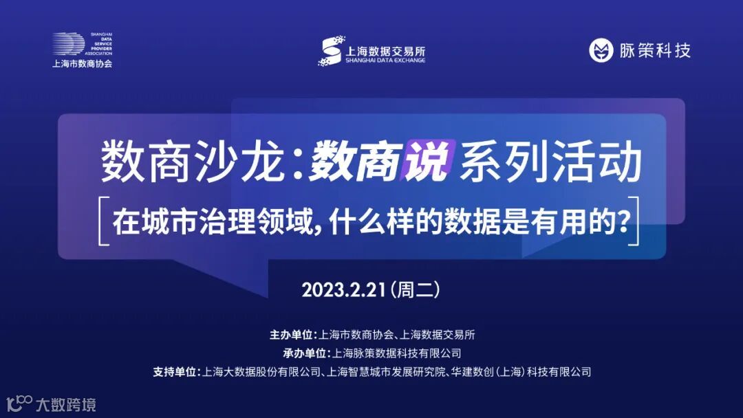 2月21日,上海市数商协会联合上海数据交易所和上海脉策数据科技有限公司成功举办2023年首场数商沙龙系列活动,多方共话城市治理数据价值。来自市经信委、上海市数商协会、上海数据交易所、上海脉策数据科技有限公司、上海市大数据股份有限公司、上海智慧城市发展研究院、华建数创(上海)科技有限公司的领导、专家和企业代表,围绕城市数据治理、城市数字化转型等话题进行了深入探讨和分享。