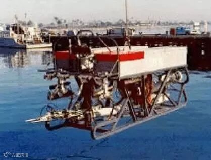 另外,当时发生的石油短缺使得油价提高,刺激着近海石油开发业的发展,同时也促进了ROV的迅猛发展。到了70年代,ROV产业已开始形成,ROV在海洋研究、近海油气开发、矿物资源调查取样、打捞和军事等方面都获得广泛的应用,是目前使用最广泛、最经济实用的一类潜水器。ROV的最大下潜深度可达一万米。图2和图3为美国CURV2和CURV3型ROV,这是在CURV1的基础上不断改进而产生的功能更完善的ROV。