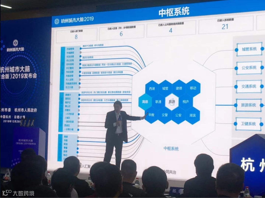 会议由杭州市委书记周江勇主持,而杭州城市大脑总架构师王坚向公众第一次全面地介绍了杭州城市大脑(综合版)。
