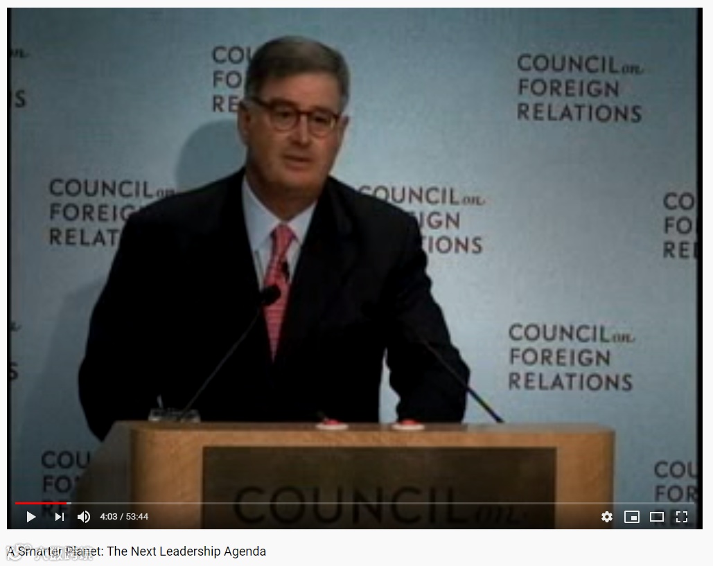 而这一天,不知道出于什么原因,位于纽约的美国外交协会没有邀请政治学者去评论刚刚过去的选举,也没有找金融专家为次贷危机开出药方,而是找来了IBM的总裁帕米萨诺大谈他的“智慧星球”战略: