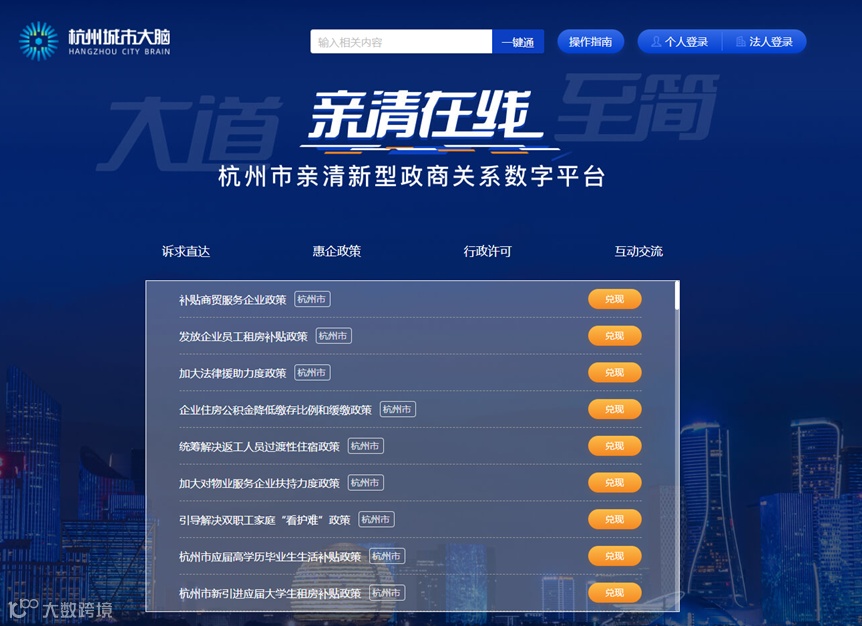 2020年初,在疫情打击后的经济恢复期间,杭州城市大脑又推出了“亲清在线”。这是一个很有创意的应用。